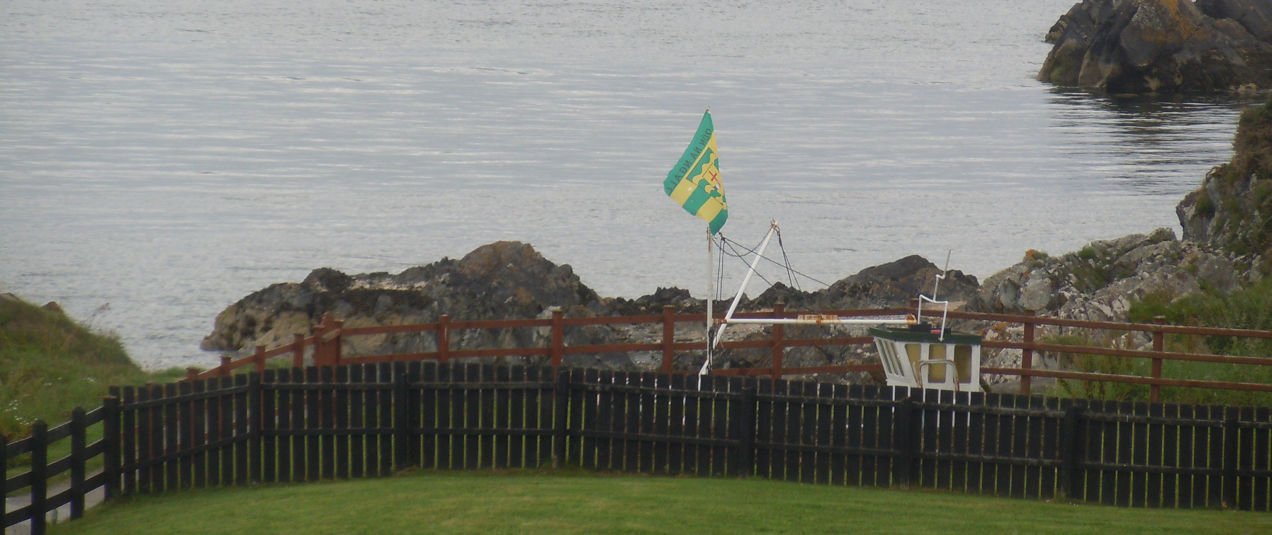 Grande journée ce dimanche dans le Donegal, que nous avons traversé du Sud au Nord pour nous rendre à Moville, notre lieu de résidence pour une semaine: partout des drapeaux verts et jaunes. Dans les rues, dans les jardins, sur les maisons, les pubs… Rien à voir avec le Brésil, il s’agit des couleurs du Donegal, dont l’équipe disputait la finale de football gaélique cet après-midi.