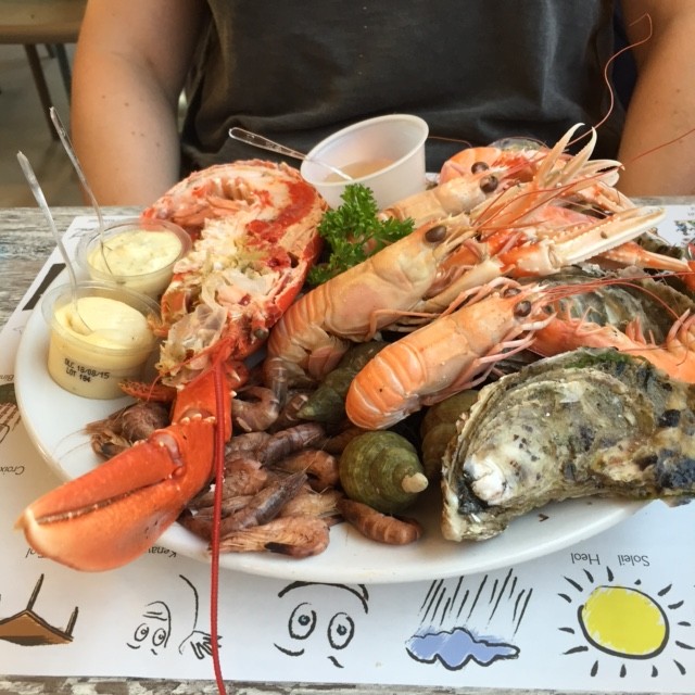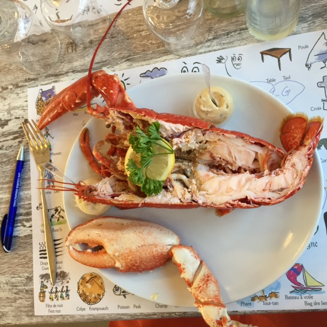 Pour notre dernier repas en Bretagne, nous avons choisi les Viviers de Tréveneuc, qui ne proposent que des poissons et des fruits de mers… De belles assiettes en perspective, et Line a choisi un homard! Une excellent repas, au bord de l’eau, et des prix tout à fait corrects.