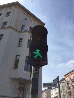 Oui, le petit bonhomme des feux de circulation… On le trouvait avant la réunification à l’est, et il a fini par s’imposer un peu partout à Berlin, devenant un véritable symbole. Il y a des boutiques entières consacrées au petit bonhomme vert ou rouge, et on trouve même des chips!