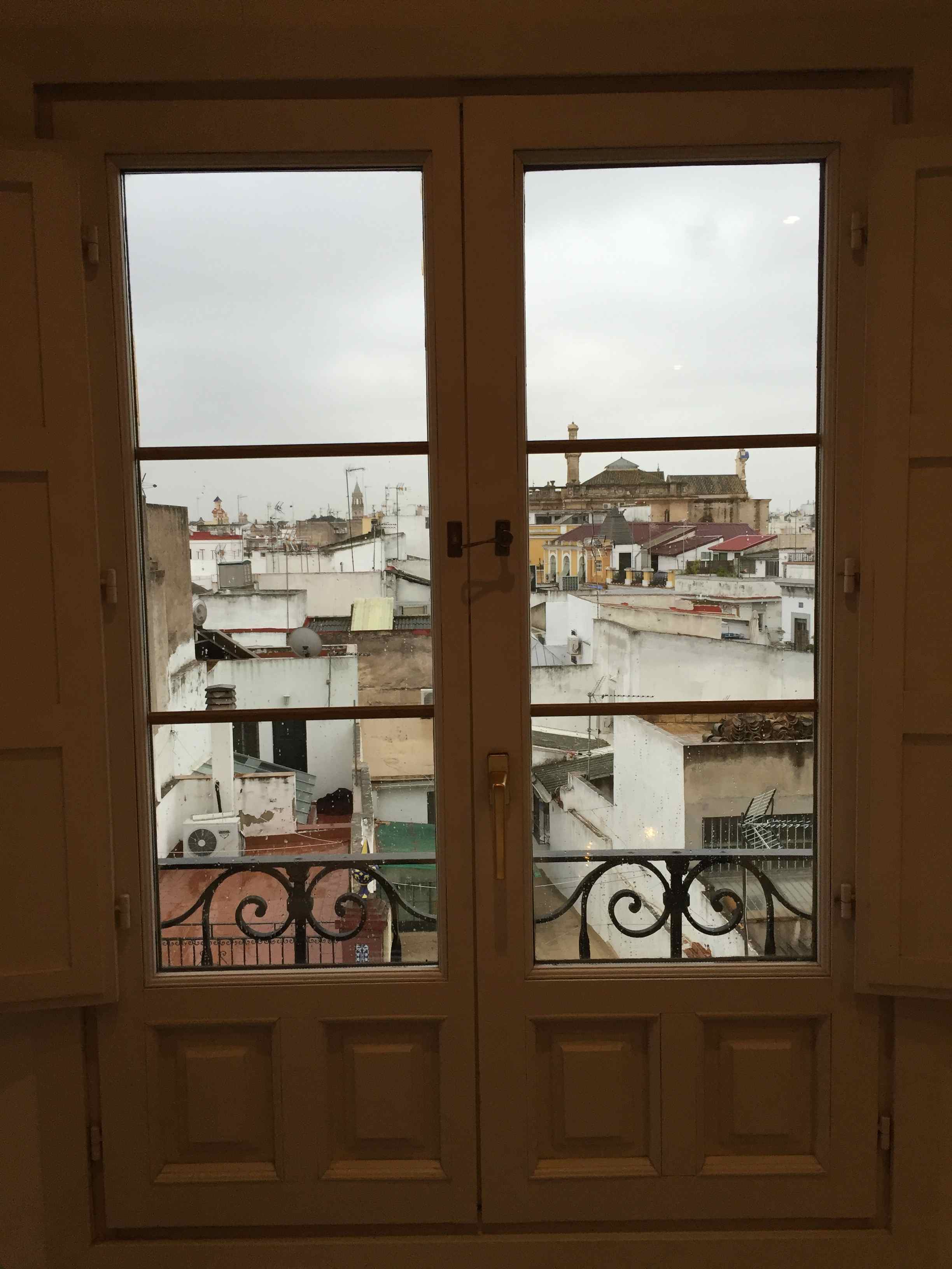 Nous sommes arrivés hier en fin d’après-midi à Séville. Après avoir trouvé un parking pour la voiture, puis retrouvé notre chemin, nous voici dans notre appartement d’une semaine, un petit duplex au 4e étage d’une maison du quartier de Macarana. Après la pluie d’hier, le soleil semble revenir, et nous nous apprêtons à partir à la découverte de la ville.