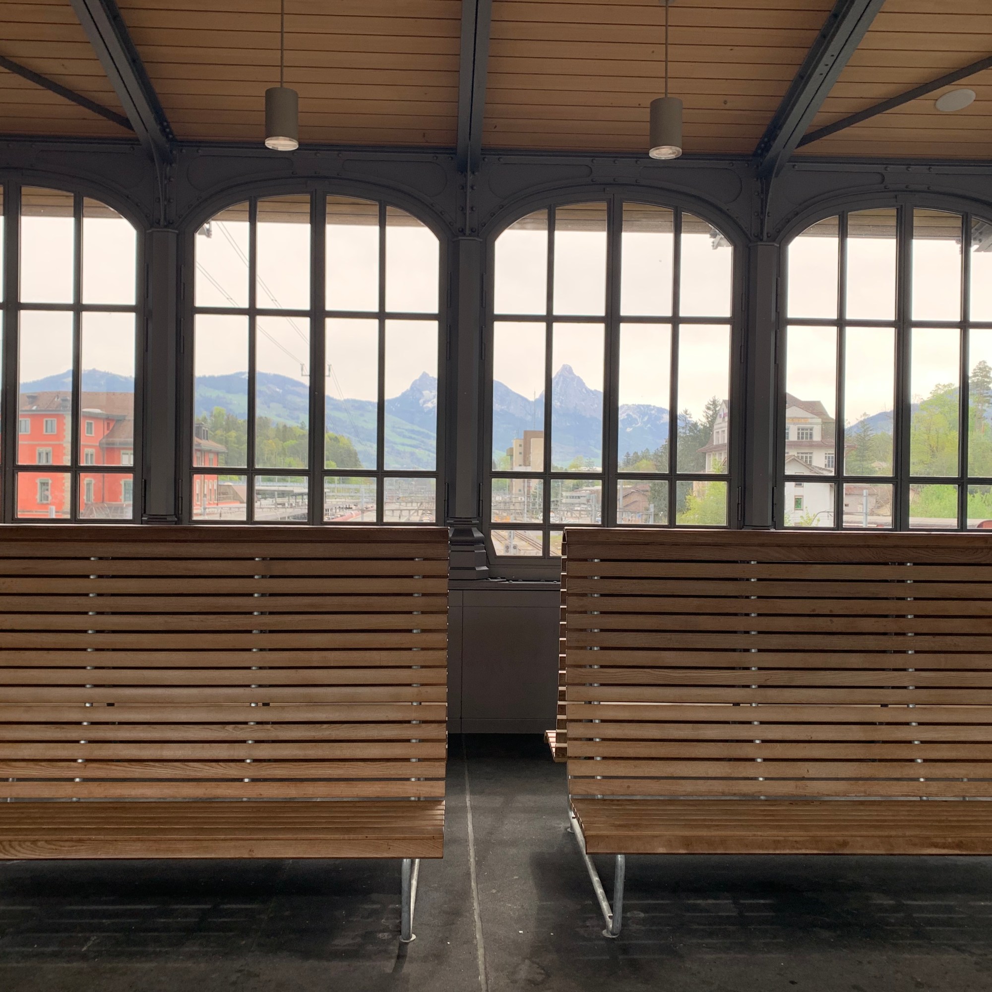 Dans la salle d’attente d’Arth Goldau quelques panneaux évoquent l’histoire du Rigi ainsi que les personnalités qui sont passées par là , pas forcément à la gare car la montagne était appréciée quelques années avant l’arrivée du train déjà. La reine Victoria s’est elle aussi émerveillée de la vue. Quant à Turner il a peint la montagne, sans les rails évidemment.