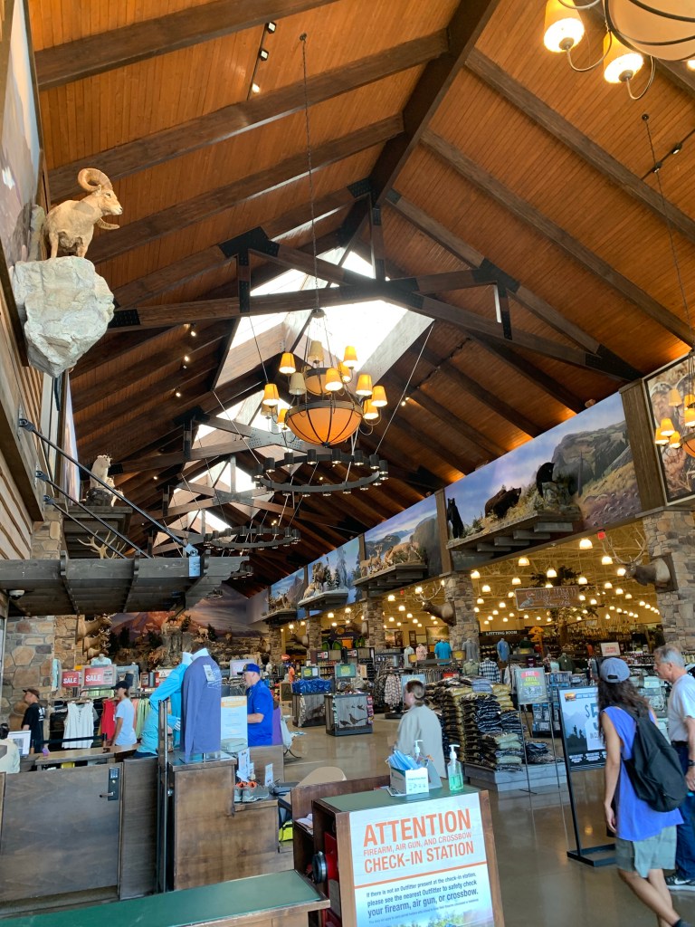 À quelques dizaines de miles de Portland, on se retrouve assez vite dans des parcs naturels faits de forêts et de rivières. L’achat d’une canne à pêche par un cousin nous emmène donc chez Cabela’s, le spécialiste de la branche. Le magasin se trouve en banlieue, juste à-côté d’un supermarché.