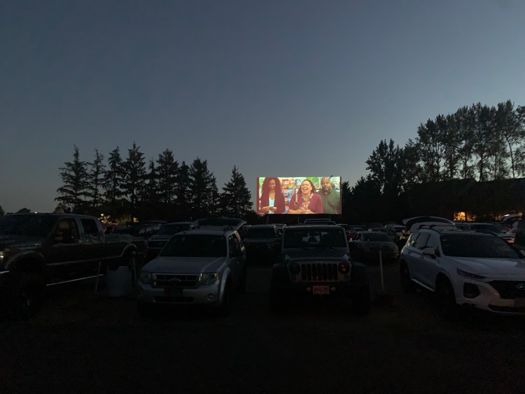 Le film commence et plus rien ne bouge. un chien affectueux se promène d’un véhicule à l’autre, tandis que sur l’écran, Ferris Bueller passe une folle journée. Un film de 1986, suivi de Grease, qui date de 1978… encore un voyage dans le temps dans notre voyage dans le temps… mais c’est un hasard, le cinéma passe également Minions 2, qui vient de sortir.