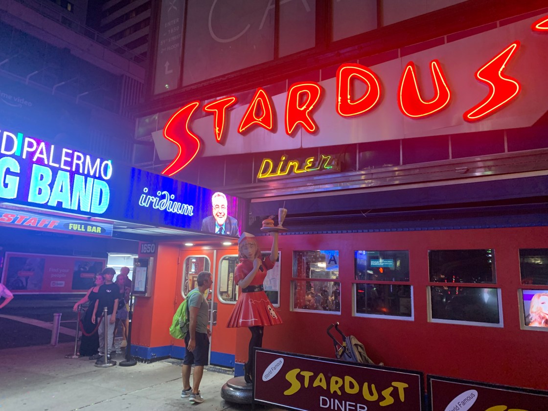 Le lundi, à Broadway, les théâtres sont fermés. Il reste une solutions pour tout de même écouter de la comédie musicale: Ellen’s Stardust Diner. Ellen’s Stardust, c’est un restaurant à deux pas de Times Square. Il faut un peu de patience pour entrer, il y a en général au moins une demi-heure de queue.