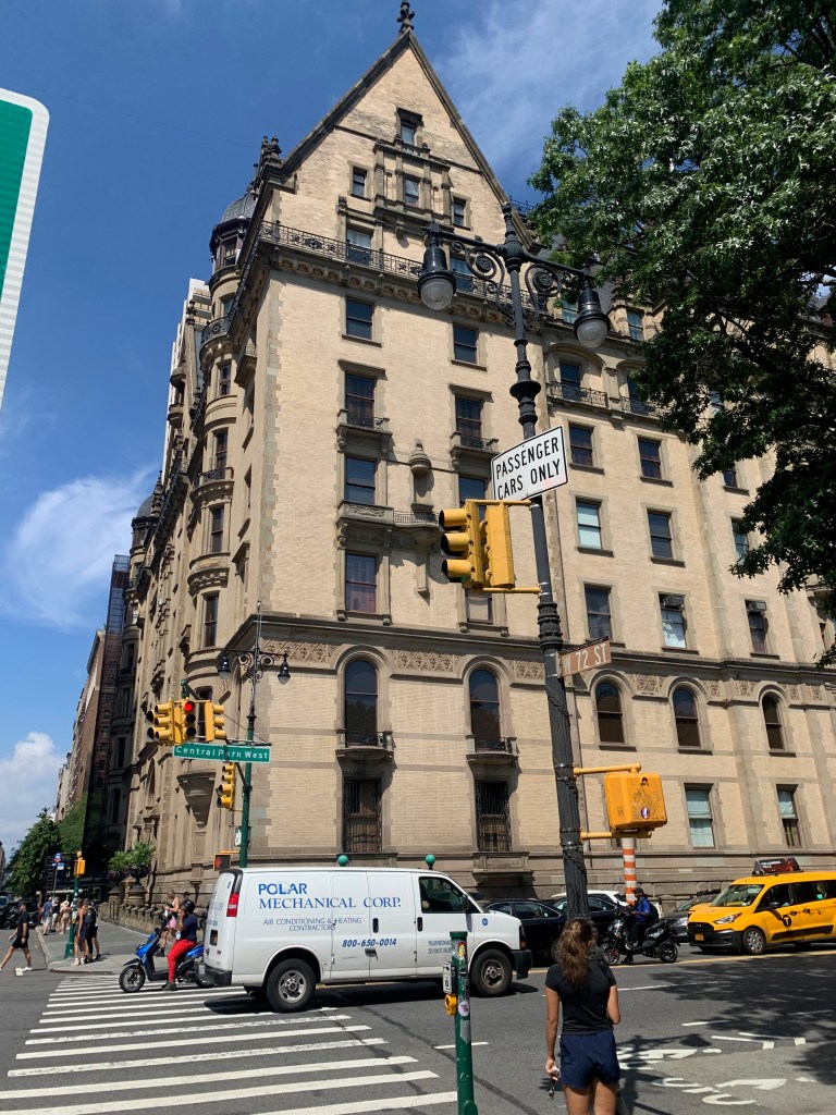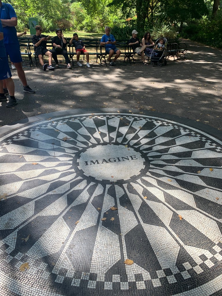 Après une halte au bord de l’un des plans d’eau pour manger un « pretzel », pas terrible en l’occurrence, le parcours vous emmène devant le Dakota Building, en bordure du parc, et juste à côté, vers « Strawbery Fields », un petite coin de parc aménagé en mémoire de John Lennon. Sur l’un des bancs, les guitaristes jouent inlassablement la musique de l’artiste.
