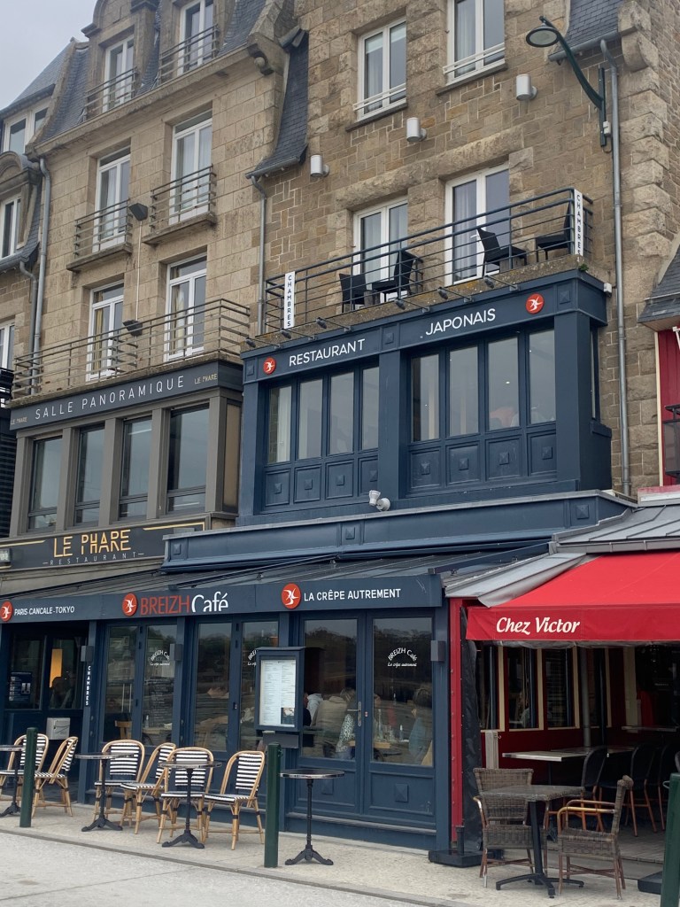 Ça tombe bien, il est l’heure du repas. Deux possibilités: acheter des huîtres à l’un des stands sur le quai et les manger sur place avec un verre de vin blanc, ou alors déguster une excellente crêpe au Breizh Café. Nous avions d’ailleurs déjà pu goûter aux crêpes de l’établissement dans sa filiale de… Tokyo en juillet 2018. A l’étage, à Cancale, on trouve d’ailleurs un restaurant japonais…