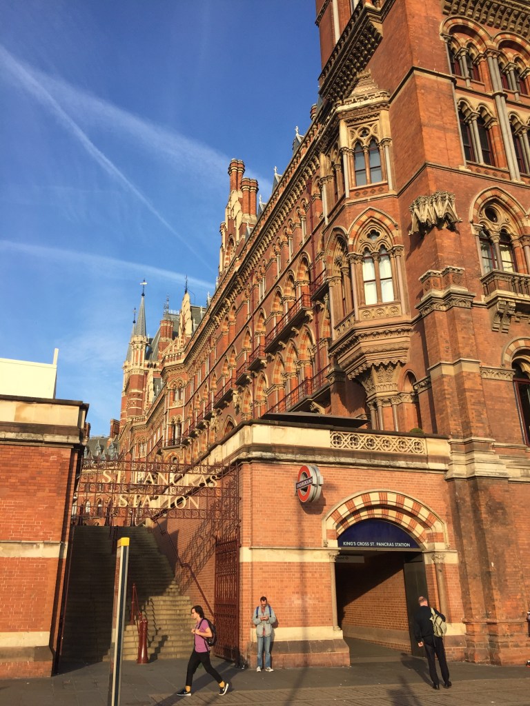 À Londres, les trains en provenance du continent arrivent à la gare internationale de St. Pancras, après avoir contourné la métropole par l’est. St.Pancras fut construite pour desservir les gares des Midlands, puis on songea à la détruire dans les années soixante au profit de ses deux voisines, King’s Cross et Euston, avant qu’elle ne fût choisie pour devenir gare internationale. Sa façade fait davantage penser à une sorte de cathédrale qu’à une gare, et l’hôtel cinq étoiles qui s’y trouve est absolument hors de prix…