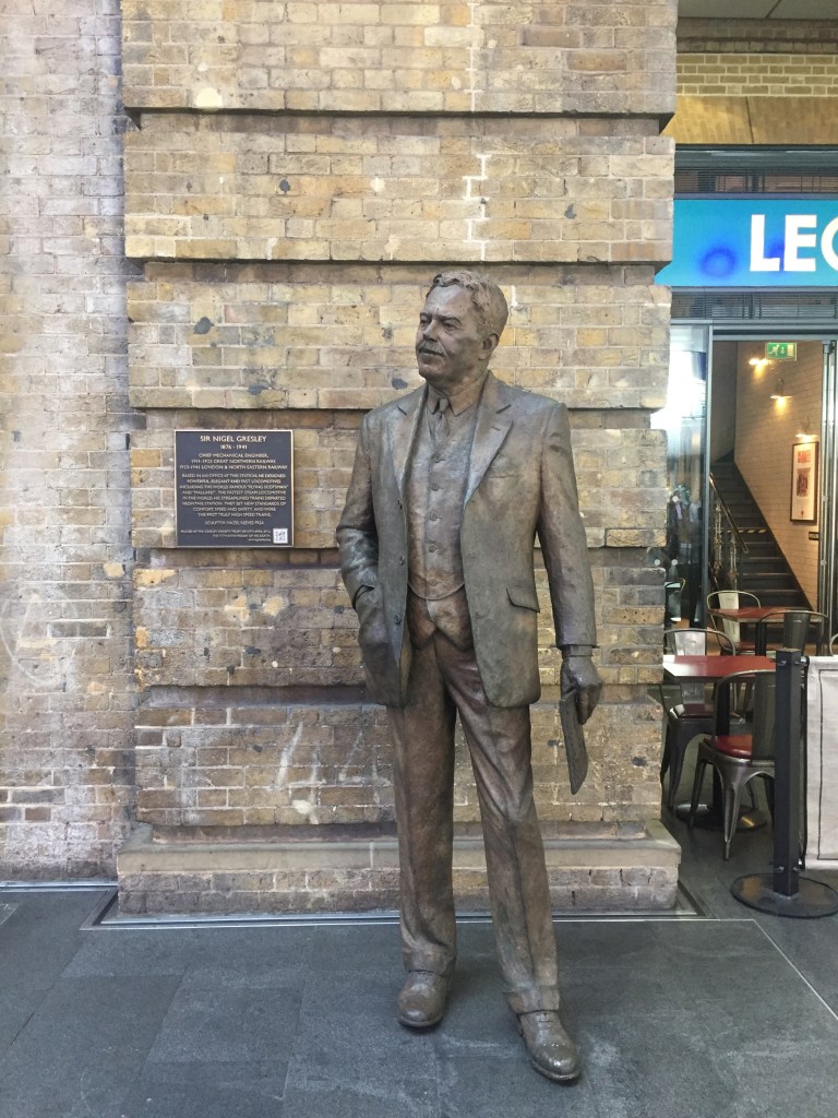 C’est de cette gare que vous partirez pour York, pour Edimbourg ou pour l’école des sorciers. (On peut faire une photo sur le quai 9 ¾). De St-Pancras, aucun problème pour s’y rendre, il suffit de traverser la rue. Les deux gares sont en effet voisines et il faut à peine 10 minutes pour y accéder. La gare a été rénovée ces dernières années, une halle largement vitrée a été ajoutée au bâtiment historique. Ouverte en 1852, elle a vu passer de grands trains au début et au milieu du XXe siècle, comme le Flying Scotmann, oui, l’Ecossais volant, mythique express qui reliait Londres et Edimbourg ou encoe la Mallard, locomotive à vapeur carénée bleue qui détient (encore actuellement…) le record de vitesse à vapeur avec 203 km/h, en 1938. Les Anglais aiment bien mettre des statues dans les gares. A King’s Cross, on trouvera celle de Sir Nigel Gresley, ingénieur qui dessina la locomotive Gresley, et à Paddington, on trouvera celle de M. Brunel…
