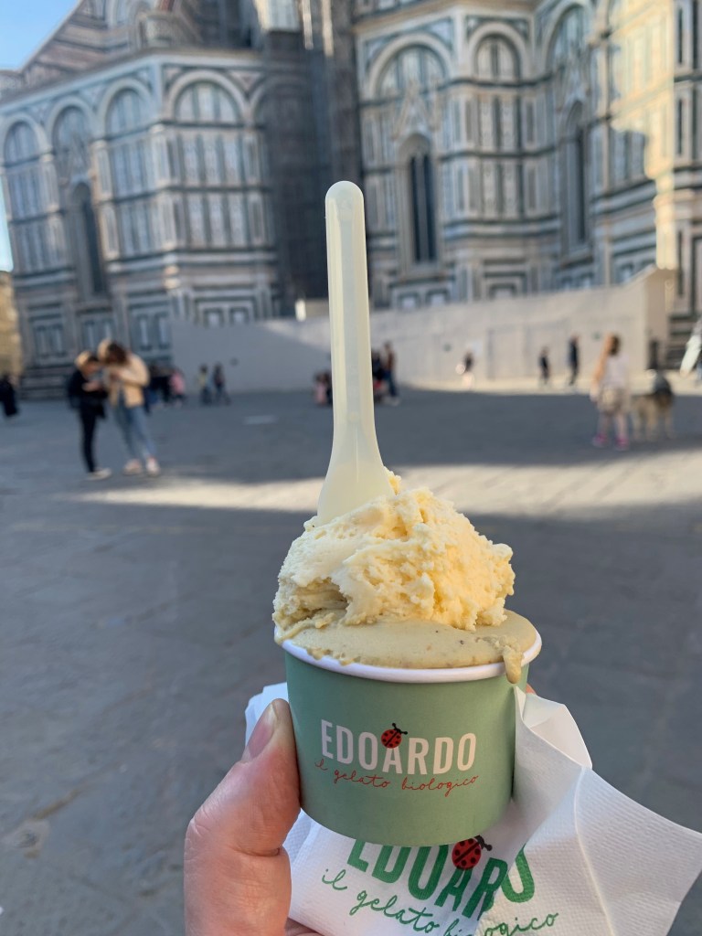 La suite dans un prochain article de ce blog. Pour l’instant, prenons le temps de déguster une excellente glace bio maison: chez Edoardo, facile à trouver, place du Dôme. Il faut parfois faire la queue, mais les produits sont excellents. Par exemple zabaione-pistache salées de Sicile…