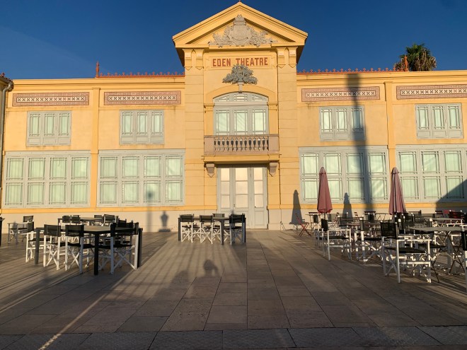 Le long du bord de mer, le promeneur passera devant un bâtiment historique: l’Eden Theatre. Construit en 1895, ce théâtre accueillit le 21 mars 1899 quelque 250 habitants de La Ciotat pour sa première représentation payante. En 2024, on y projette toujours des films, ce qui en fait la plus ancienne salle de cinéma du monde encore en activité (inscrite au livre des records Guiness). On peut visiter le cinéma, ou mieux encore, aller y voir un film. Lors des Journées du Patrimoine, projections exceptionnelles de films des Frères Lumières, avec explications historiques.