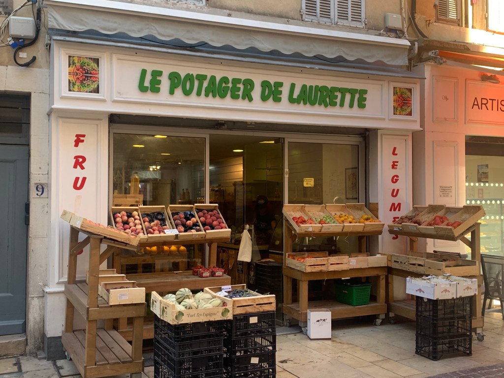 Fruits de saison dans l’une des boutiques de la vieille ville et cinéma « Lumière ».