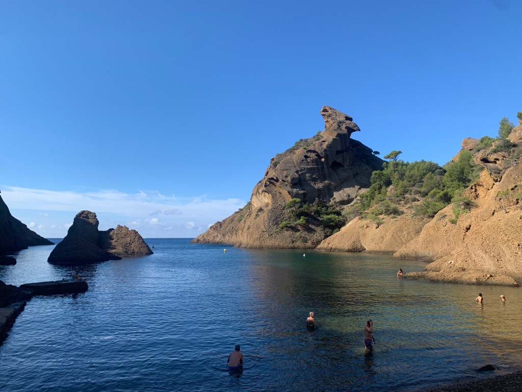Une fois que l’on aura fait le tour des ruelles et du port, il sera temps de profiter de la baignade. A une quinzaine de minutes à pied, la calanque de Figuerolles permet une baignade agréable dans un lieu un peu magique. Il est conseillé d’y arriver tôt pour s’y retrouver quasi seul. Lorsque le monde arrive, on peut profiter de se retirer vers la buvette du restaurant « Chez Tania », qui propose des crêpes et de la petite restauration.