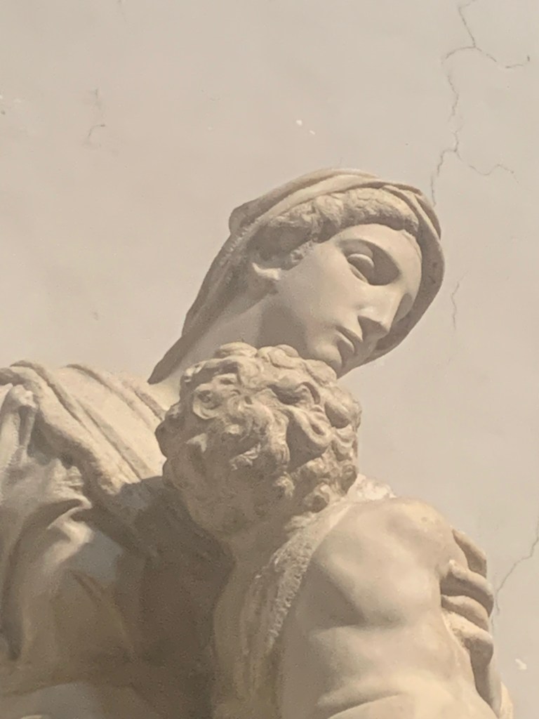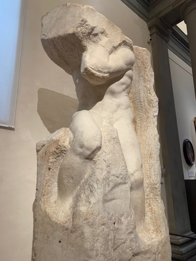 Justement, les autres sculptures de Michel-Ange qui ornent cette grande salle de musée sont inachevées. On peut justement y percevoir le travail de l’artiste et l’imaginer en train de tailler son oeuvre…
