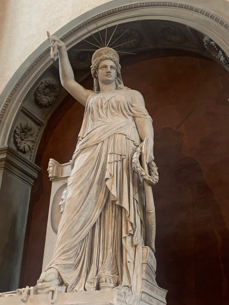 Prenons le temps de nous asseoir derrière la statue, photographiée des millions de fois par les flots de touristes. Oui, la statue est sublime, oui, il a les mains trop grandes par rapport au reste du corps, oui 2il est tout nu le Monsieur », comme le dit en s’étonnant une fillette à ses parents. Oui la finesse du travail est renversante, oui, la liste des superlatifs ne s’arrête pas.