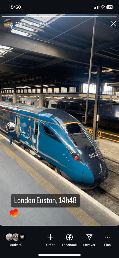 Mais bon, il y a un « Paul » à l’intérieur (pas le bassiste, le boulanger), qui propose des sandwichs jambon-beurre-fromage à des prix encore corrects pour une zone fermée. Le voyage en Eurostar se fait toujours de manière agréable, le train est parfaitement à l’heure, ce qui tombe bien, puisqu’il faut passer à pied de la gare de St-Pancras à celle d’Euston. C’est faisable, et si tout va bien ça laisse même le temps d’acheter un café… ah oui, on est en Angleterre, le café a sensiblement changé de goût…