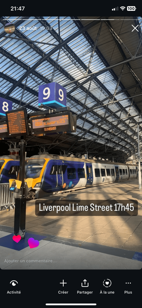 À vol d’oiseau, il y a un peu plus de 1000 kilomètres. Il faut en rajouter deux à trois cents, ainsi qu’un tunnel sous la mer, pour rejoindre Liverpool depuis Lausanne. Mais c’est possible en une journée, avec un départ de Lausanne avec le premier TGV Lyria, un changement de gare à Paris, où l’on remarque que les informations dans celles-ci ont été considérablement améliorées, Jeux Olympiques aidant, puis les contrôles de sécurité avant de prendre l’Eurostar. Passage de la sécurité, robot à passeports français, robot à passeport anglais et enfin la zone d’attente du train, où l’on… attend longtemps puisqu’on nous a demandé de venir bien en avance et que le passage des contrôles n’a duré que 5 minutes…