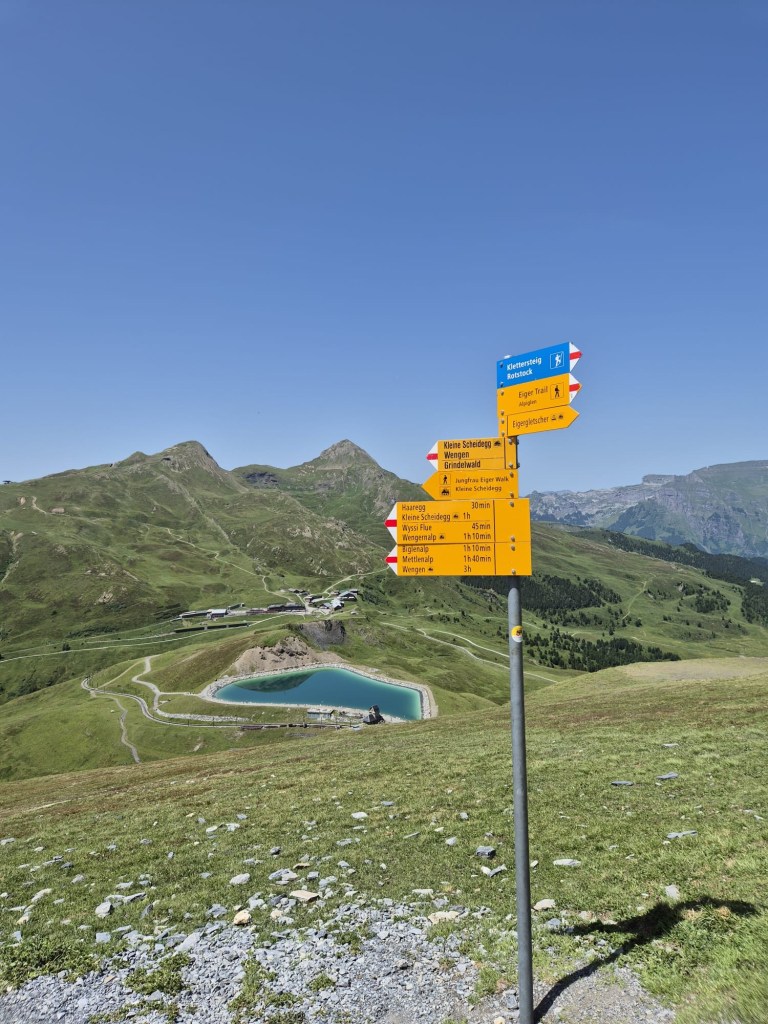Une petite promenade assez facile et pas trop longue : en descendant de la Jungfrau, sortir à la station Eigergletscher et poursuivre à pied (environ 40 minutes) jusqu’à Kleine Scheidegg.