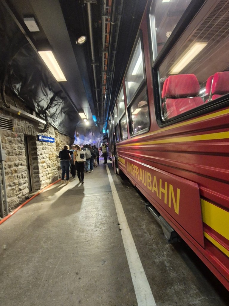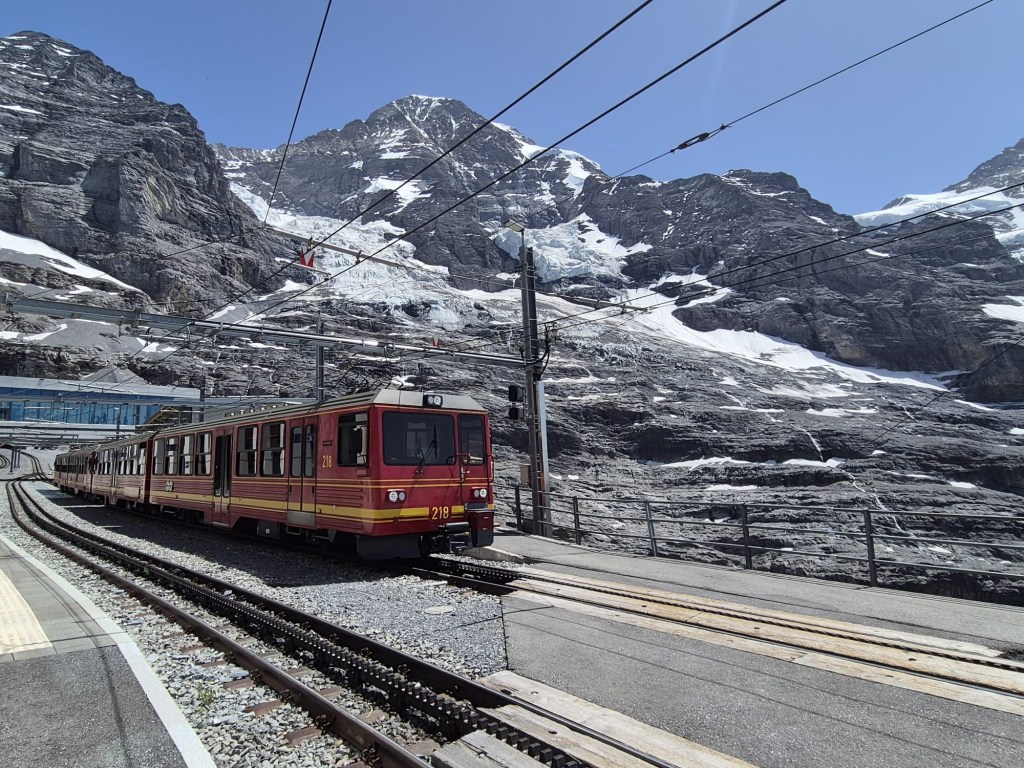 Située à 3454 mètres d’altitude, la gare du Jungfraujoch est la plus haute d’Europe. Pour y accéder depuis la plaine, il faut prendre un premier train à Interlaken Ost, puis un autre à Lauterbrunnen pour changer encore une fois à Kleine Scheidegg, d’où le trajet se termine entièrement en tunnel.