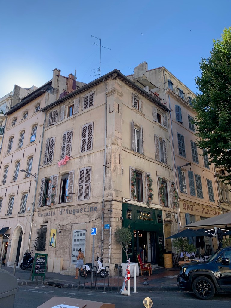 Et juste en face, la Table d’Augustine, qui propose une excellente cuisine provençale sur une terrasse accueillante, à la lisière du Panier.