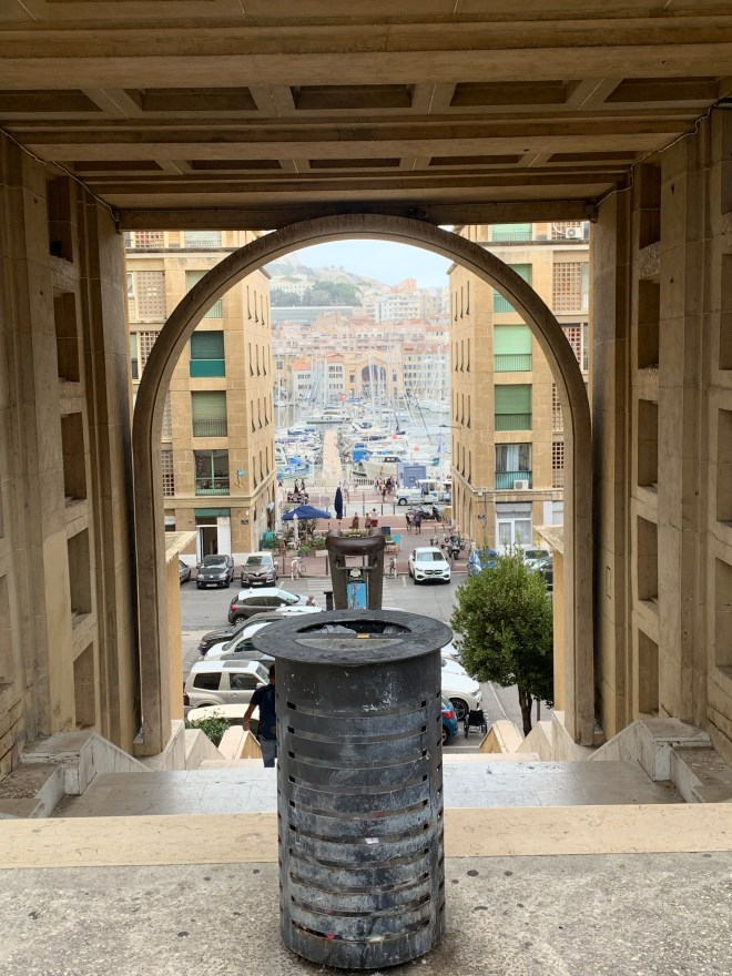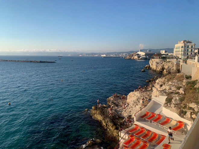 Alors oui, première impression à peine sorti sur le quai : il fait chaud. Normal, c’est le Sud. Allez, premier arrêt, l’esplanade qui se trouve juste devant la gare Saint-Charles : la vue sur la mer, le ciel. Bleu sur bleu… C’est parti.