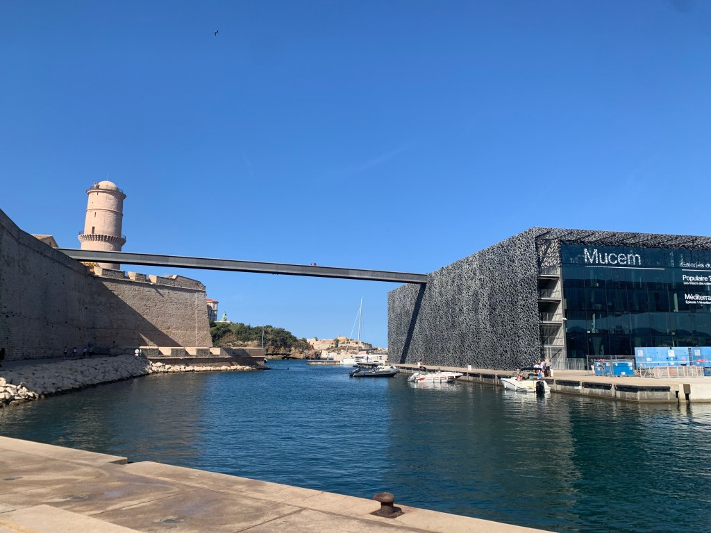 Juste à-côté du bâtiment « abritant » la grotte se toruve le complexe du MUCEM, le Musée des civilisations de l’Europe et de la Méditerranée. Hébergé dans une forteresse médiévale, le Fort Saint-Jean, ainsi que dans un bâtiment contemporain et plutôt bien réussi, ce musée nous ouvre les portes de l’histoire et du quotidien des femmes et des hommes qui vivaient et vivent autour de la Méditerranée. Expositions temporaires intéressantes et large collection permanente autour de la culture méditerranéenne. Depuis les différentes terrasses et passerelles, vue impernable sur Marseille et la Méditerranée.
